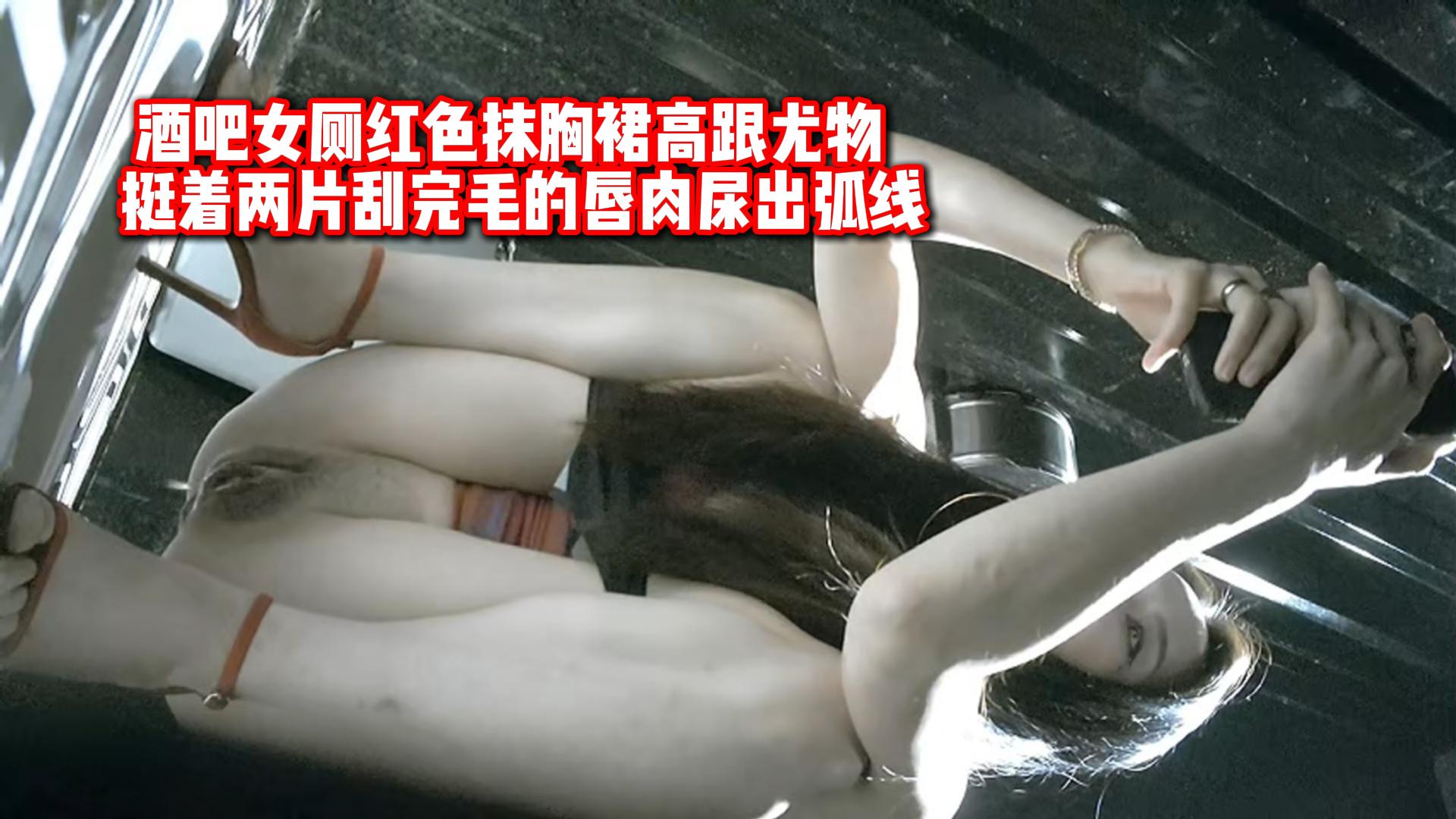 酒吧女厕红色抹胸裙高跟尤物 挺着两片刮完毛的唇肉尿出弧线